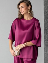 Vilatte Блузка свободная из струящегося плотного сатина D29.279 бургунди