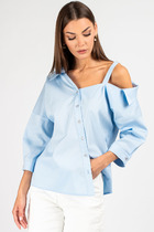 Блузка женская прямого силуэта с притачным рукавом. По переду V-образный вырез с притачной планкой и складкой. Рукав на пате. Низ фигурный.