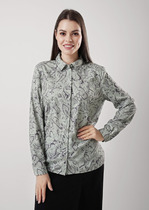 Блузка рубашечного типа, свободного силуэта, со спущенной линией плеча. По переду застежка на петли пуговицы. Рукава обьемные (буфы), по низу рукава резинка.