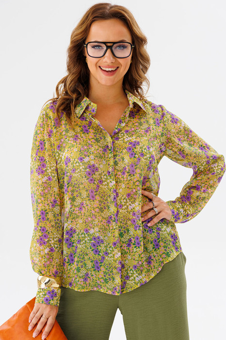 Совместные покупки Сургут Женская одежда Блузки, рубашки — Блуза Anastasia 1134 желтый (принт цветы)