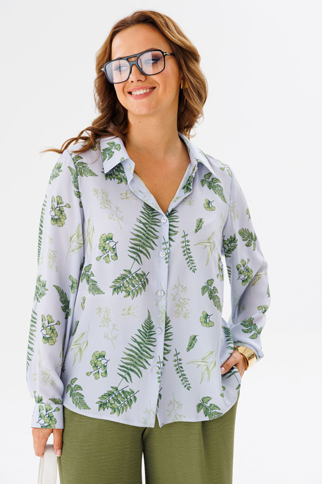 Совместные покупки Сургут Женская одежда Блузки, рубашки — Блуза Anastasia 1134.1 серо-голубой (растительный принт)
