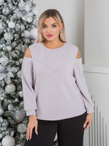 Блузка прямого силуэта, со спущенным плечом, с разрезами в боковых швах.