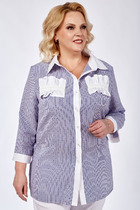 Прямой силуэт, отложной воротник на стойке. Перед с застроченными односторонними складками и кокетками, переходящие в кокетку по спинке. Застежка по всей длине на пуговицы. По середине спинки застроченная односторонняя складка.
