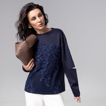 Блуза свободного кроя. Передняя часть на притачной планке, имеющей застёжку на петли-пуговицы. V-образный вырез формирует красивое декольте.