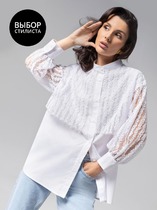 Прилегание и чёткий силуэт посадки блузы обеспечивает структура ткани со стрейчевым эффектом.