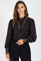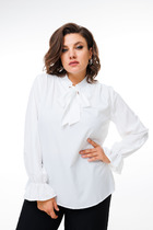 Блуза женская выполнена из струящейся гладкой с атласным блеском ткани, блуза полуприлегающего силуэта, горловина округлая с воротником- завязкой. Рукав втачной, длинный по низу рукава расположена манжета. Спинка изделия с разрезом и застежкой петля- пуговица на стойке.