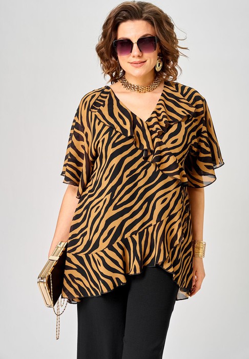 Совместные покупки Сургут Женская одежда Блузки, рубашки — Блуза EVA GRANT 198-1 принт зебра кофе