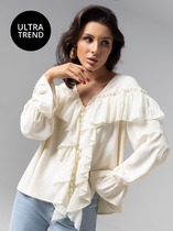 Эта блузка — отличный выбор для создания стильного, но ненавязчивого образа. Она прекрасно сочетается как с классическими брюками, так и с джинсами, что делает ее универсальной для любого случая — от повседневных прогулок до более официальных мероприятий.