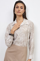 Блузка трикотажная с планкой по горловине, с круглым вырезом горловины. Перед и спинка цельные. Рукав втачной, 3/4.