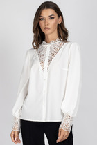 Стильная блуза прямого рубашечного кроя с центральной застежкой на пришивные пуговицы. Воротник отложной на стойке. Рукав длинный, втачной, дополнен притачной манжетой с застежкой на пришивную пуговицу. Слева блуза дополнена нагрудным накладным карманом.