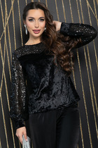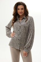 Блузка женская прямого силуэта на центральной застежке на петли и пуговицы. Перед с нагрудными вытачками от боковых швов. Спинка цельнокроеная. Рукав втачной одношовный длинный по низу со сборкой и на манжете, застегивающемся на петлю и пуговицу. Горловина на стойке с воротником.