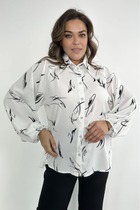 Блуза прямого силуэта. В боковых швах разрезы . Низ разноуровневый. По переду нагрудные вытачки и декоративная вышивка. Спинка со средним швом.Плечо немного спущено. Рукав рубашечного покроя , 3/4, слегка расширен к низу. Горловина "лодочка".