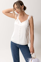 Стильная рубашка свободного кроя с центральной планкой на застежку пуговицы  по полочке из  ткани содержащей хлопок, со спущенной линией плеча. Изделие с горловиной  стойкой. По  переду  рубашки накладные карманы.  Рукав втачной двухшовный, в 12см от низа рукава кулисrа со втянутым в нее шнуром для затягивания.  Спинка изделия с кокеткой и заложенной складкой. Низ рубашки фигурный с разрезами по боковым швам.