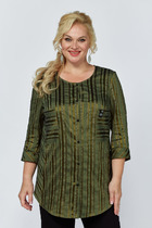 Стильная блузка прямого силуэта из плотного креп-шифона. Изделие с центральной планкой на застежку петли пуговицы по полочке и воланами вдоль планки. ГорловинаV-образной формы. Рукав втачной с центральным швом и воланом по низу и со сборкой на эластичную ленту в 8см от края рукава. Спинка изделия цельная.