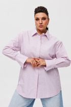 Блузка свободного кроя. Полочка с нагрудными вытачками. Горловина и разрез на застежку по спинке обработан косой бейкой из основной ткани, разрез с навесной петлей на пуговицу. Рукав прямой, длинный, втачной, со сборкой на эластичную ленту в 8см от края рукава. По линии талии на боковых швах настрочены шлевки и вдет пояс из основной ткани. Низ изделия фигурный с разрезами в боковых швах.