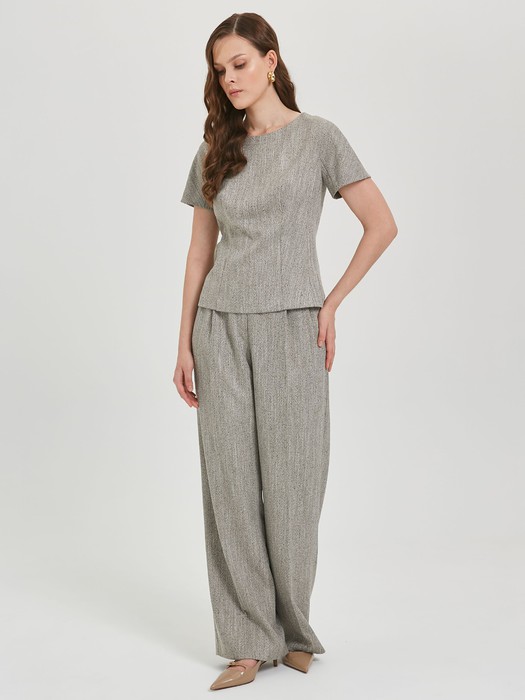 Модель полуприлегающего силуэта, с рельефами, без боковых швов. В среднем шве спинки потайная застёжка молния. Рукав короткий, с ластовицей.