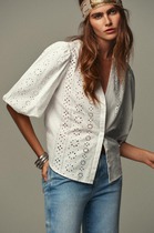 Блузка из мягкой вискозной ткани свободного силуэта со спущенной линией плеча. Полочка цельная, спинка с центральным швом. Горловина V-образной формы. Низ блузки и низ цельнокроенного рукава обработаны декоративным трикотажным довязом.