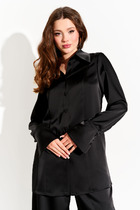Женственная блузка прямого кроя из плательно-костюмной ткани. V-образная горловина оформлена по переду воланом и дополнена тесьмой, которую можно элегантно повязать вокруг шеи. Длинный втачной рукав по запястью присобран на резинку. Низ ровный, без разрезов.