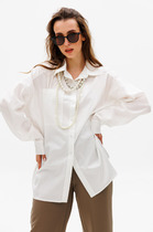 27.03 Vilatte Блузка из плотного полуматового сатина с удлиненным манжетом D29.
