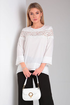 Блуза женская, прямого силуэта, с застежкой по спинке на пуговицу.