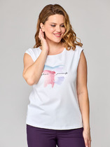 Рубашка женская, прямого силуэта со спущенным плечом.