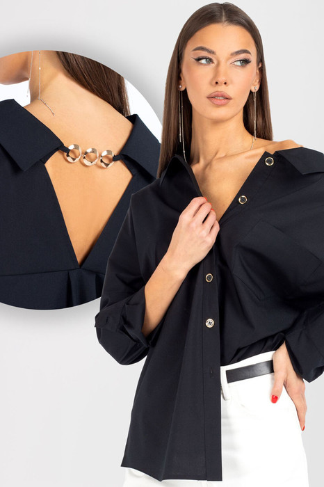 Блузка-рубашка прямого силуэта со спущенным плечом.