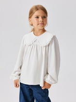 Трикотажный блуза из линейки VAY KIDS школа. Отложной воротничок, застежка на пуговицы с ажурной отделкой.