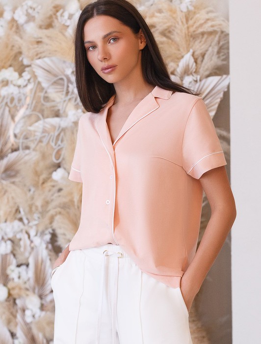 Блузка из эластичного хлопка с контрастным кантом