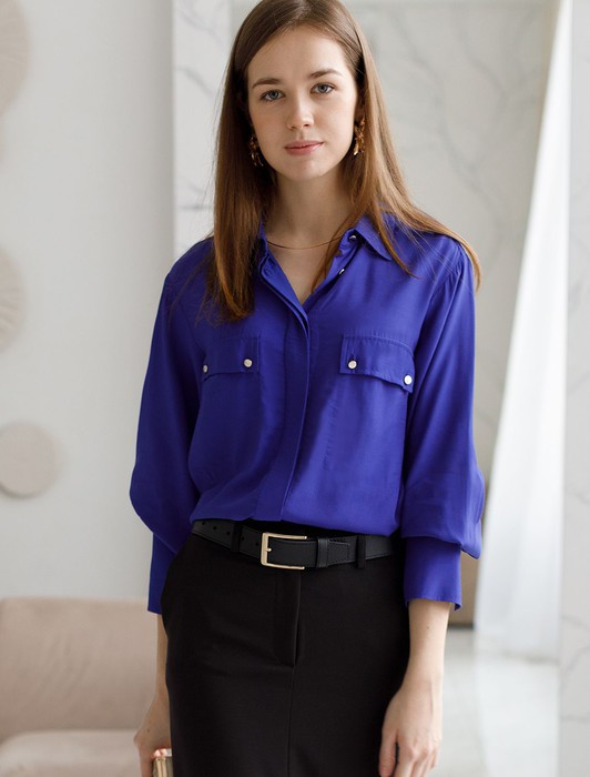 Состав: 55%Вис 45%Лиоцелл (Вис) Параметры модели на первом фото: Рост 172, бюст 88, талия 64, бедра 88Блузка с имитацией карманов и удлиненными манжетами выполнена из премиальной вискозы и лиоцелла. На спинке изделия фирменный логотип бренда. Имитация карманов позволяет этому элементу выглядеть аккуратно без складок и фалд, которые вероятны на такой пластичной ткани.Застежка на золотистые пуговицы. Приятная на ощупь ткань охлаждает кожу в жаркую погоду. Отлично впишется в нестрогий офисный дресс-код или в расслабленном повседневном образе с джинсами.
