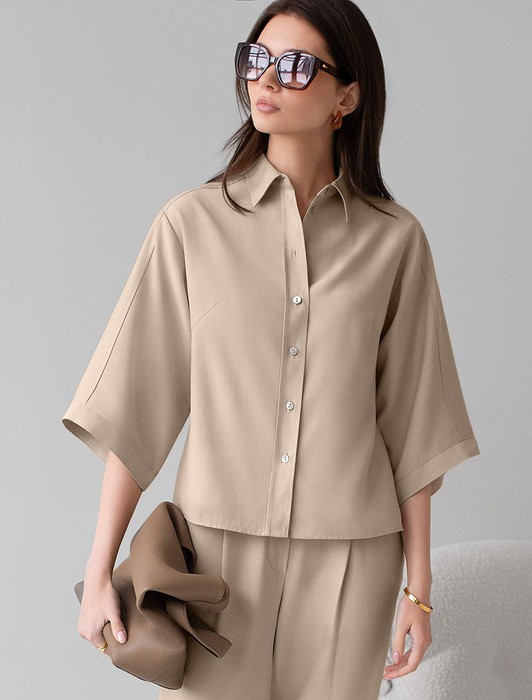 Блузка с широкими рукавами 3/4 из плотного лиоцелла