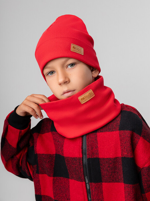 Совместные покупки Сургут Детские аксессуары Шапки — Bodo Комплект (шапка, снуд) с кожзам нашивкой 13-201MU красный