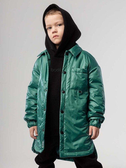 Демисезонный детский удлиненный бомбер. Материал куртки Fitsystem, влагозащитный, воздухообменный и ветрозащитный. Внутри изделия легкий гипоаллергенный современный утеплитель Hetta micro, надежная защита от холода при минимальном объеме, сохраняет упругость и форму после многократных стирок. Детали: рукава на манжетах, накладной карман, карманы в боковых швах, застежка - кнопки. Материал верха: Fitsystem 100% полиэстер, утеплитель Hetta micro 100 г/кв.м, подкладочный материал кулирная гладь 100% хлопок