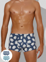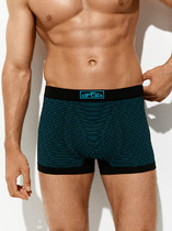 Бесшовные мужские трусы «боксеры» в полоску со средней линией талии и вывязанной брендированной резинкой.
