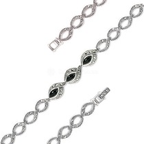 Совместные покупки Сургут Ювелирные украшения и бижутерия Браслеты — Браслет из чернёного серебра с агатом и марказитами - 19 см
