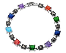 Браслет, марказит , синт.аметист , синт.изумруд , синт.рубин, SL-AGA107