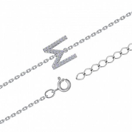 Браслет с фианитом родированный серебро 925*