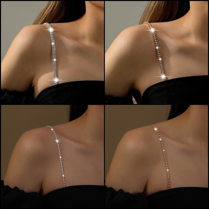 Бретели для бюстгальтера со стразами добавят изюминку в ваш гардероб. Декоративные лямки хорошо гармонируют с одеждой с открытыми плечами. Эти лямки для бюстгальтера не только функциональны, но и являются настоящим украшением, которое сделает ваш лифчик, топ или корсет еще более привлекательным и сексуальным.Если вы выбрали вечернее платье или лифчик без бретелек, чтобы выгодно подчеркнуть свое изящное декольте - бретели со стразами помогут вам в этом, вы будете выглядеть притягательно и сексуально.Бретели со стразами имеют удобную систему крепления на нижнем белье или одежде.Длина лямок - 44,5 см. (28,5 см. декоративная часть + 16 см. цепь для регулировки (См. фото))