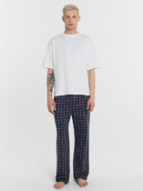 Брюки мужские спортивные. Боковые карманы и карман сзади на молнии. Спереди, около кармана небольшой принт в виде надписи. По боковому шву однотонные лампасы. Низ на манжетах.