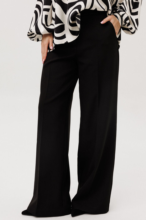 Элегантные женские брюки прямого кроя ,по переду на брючинах стрелки. Модель с высокой посадкой на притачном поясе обеспечивает идеальное прилегание. Спереди расположена практичная застежка на тесьму-молнию, добавляющая удобства при носке. Брюки укомплектованы функциональными боковыми карманами, что придает модели дополнительную практичность и удобство.