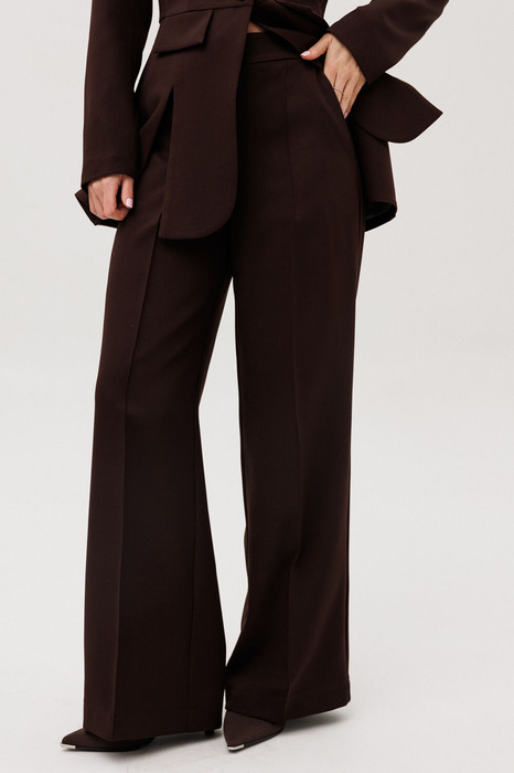 Элегантные женские брюки прямого кроя ,по переду на брючинах стрелки. Модель с высокой посадкой на притачном поясе обеспечивает идеальное прилегание. Спереди расположена практичная застежка на тесьму-молнию, добавляющая удобства при носке. Брюки укомплектованы функциональными боковыми карманами, что придает модели дополнительную практичность и удобство.
