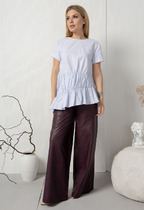 Широкие брюки из эко-кожи на хлопковой основе с резинкой по талии и  боковыми карманами.