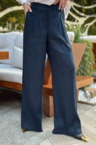Широкие брюки из эко-кожи на хлопковой основе с резинкой по талии и боковыми карманами.