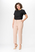 Элегантные,  с высокой посадкой и красивым облеганием бедра брюки. Застроченные стрелки прилают стройности и шика. Низ брюк умеренно широкий. Ноги при таком крое учеличиваются в длине. Застежка на потайную тесьму-молнию в  боковом шве