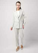 Брюки полуприлегающего силуэта с разведением к низу. Характеристики: полуприлегающий силуэт, пояс стабильный, по переднему и заднему полотну брюк стрелки, по заднему полотну прорезные кармашки обманки, длинна брюк по боковому шву 112 см.
