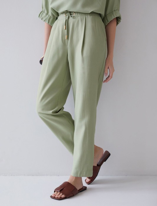 Состав: 76%Лиоцелл (Вис) 24%ПЭ Плотность: 180 Г/м2Брюки бананы светло-зеленого цвета выполнены из плотного лиоцелла. Лиоцелл это более дорогой и экологичный вариант вискозы, очень прочный и шелковистый. Модель отличается свободным кроем в бедрах и заужены к щиколотке. Удобный пояс на мягкой на резинке обеспечивает идеальную посадку по фигуре и гарантирует комфорт. Свободные брюки с высокой посадкой и аккуртными защипами создают идеальный силуэт и будут базовым элементом гардероба. Летние брюки отлично сочетаются с монохромным верхом, с ними можно создавать эффектные наряды как на выход, так и для ежедневных рабочих дел или простых прогулок.