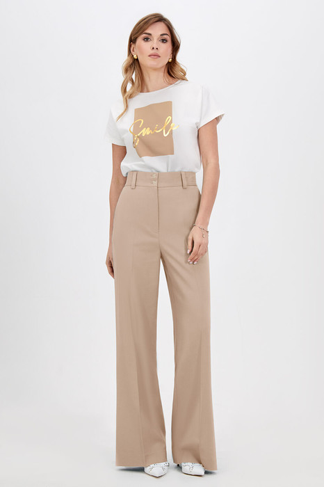 Классический шик! Модные и абсолютно удобные, широкие брюки с косыми боковыми карманами будут сопровождать вас в повседневной жизни. Модная длина создает стильные образы, подходящие как для офиса так и для повседневных мероприятий. Изделие на притачном поясе со шлёвками, собранном на эластичную тесьму по спинке и застёжкой по переду на молнию и петли-пуговицы, выполнили из приятного однотонного материала на основе льна. В пару к брюкам можно подобрать жакет из той же линейки для создания готового комплекта.