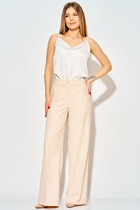 Пояс притачной, на эластичной резинке. По передней части на поясе выполнен «островок», что позволяет визуально скрыть животик. Для Вашего удобства выполнены карманы хулиганы. В боковых швах карманы «Хулиганы». Притачная кокетка по задней части, позволяет грамотно создавать нужные линии, что делает посадку брюк идеальной. Низ брюк обработан классическим способом в подгибку.