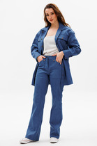 Брюки прямые,классические, с заутюженными стрелками,по переду обработаны карманы с отрезным бочком,застежка на тесьму-молнию и 1 пуговицу.На задних половинках обработаны вытачки и имитация карманов с листочкой, пояс в брюках притачной. Длина брюк от талии по боковому шву 100 см. К брюкам рекомендуем жакет 205-арт. 2 80 22