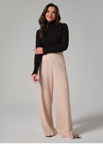 Брюки классические, прямые, слегка заужены к низу,заутюжены стрелки, по переду обработаны карманы с отрезным бочком, застежка на тесьму-молнию и 1 пуговицу. На задних половинках обработаны вытачки и имитация карманов с листочкой, пояс в брюках притачной. Длина брюк от талии по боковому шву 103 см.