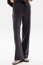 Брюки-палаццо,средней ширины,из текстильной ткани, выполнены с карманами с отрезным бочком в боковом шве. Пояс притачной, застёжка на молнию. По задним половинкам обработаны вытачки. Длина по боковому шву 108 см.
